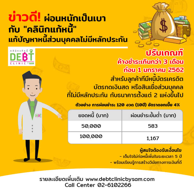 สมาคมธนาคารไทย และสมาคมธนาคารนานาชาติ จึงได้ร่วมกันจัดตั้ง "โครงการแก้ไขปัญหาหนี้ส่วนบุคคลที่ไม่มีหลักประกัน" หรือเรียกว่า "คลินิกแก้หนี้" โดยตกลงร่วมกันแต่งตั้ง บริษัท บริหารสินทรัพย์สุขุมวิท จำกัด เป็นหน่วยงานกลาง เพื่อให้ประชาชนแก้ไขปัญหาหนี้สินกับธนาคารพาณิชย์ทั้งหลายให้ได้ข้อยุติในคราวเดียว และบริหารจัดการชำระหนี้ของตนเองได้อย่างเหมาะสมตามความสามารถที่แท้จริง ควบคู่กับการเสริมสร้างวินัยทางการเงินที่ดี